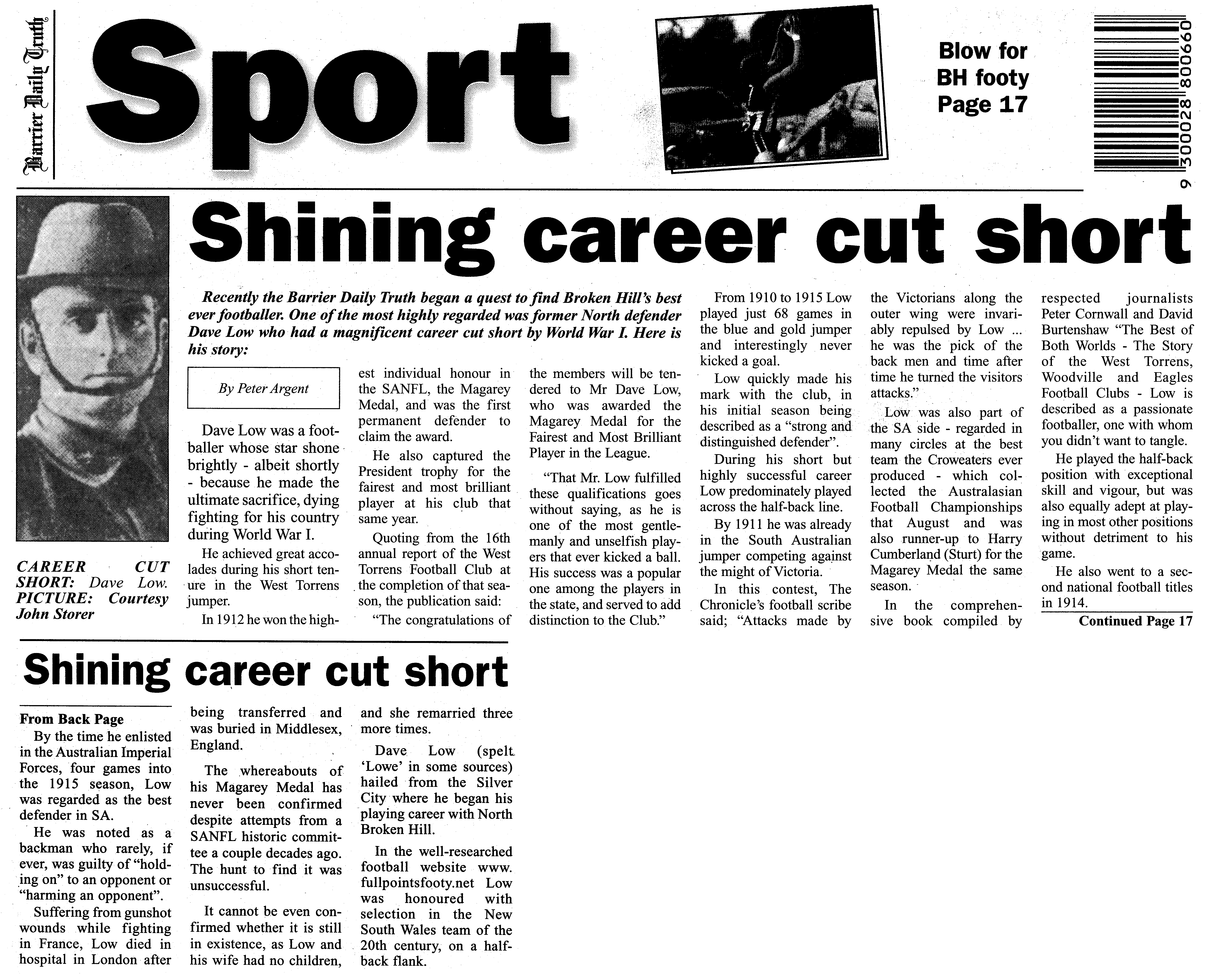 Magpiespower wrote:Broken Hill's daily newspaper is doing a regular profile about the 'Best Ever' players to come from the area.