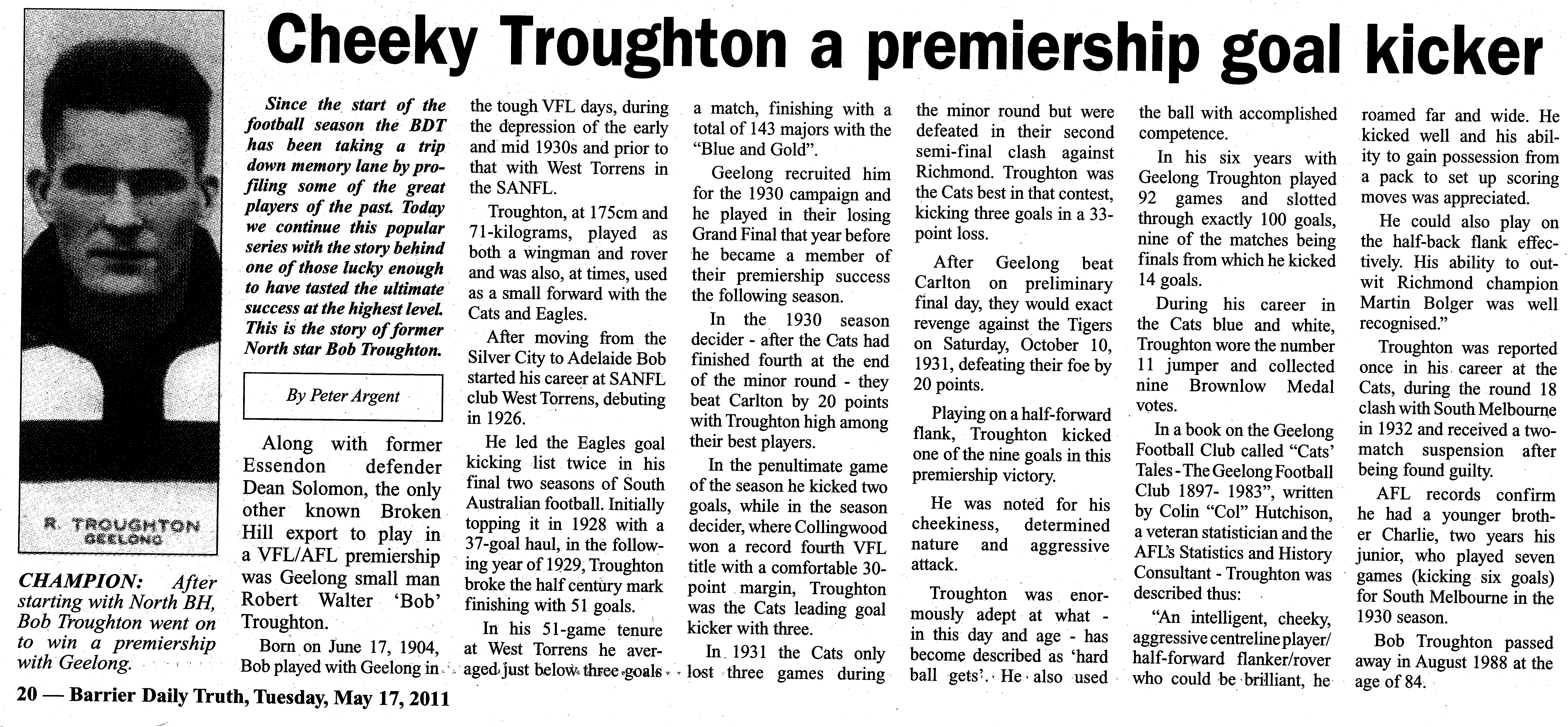 #4 - Torrens goalsneak and Geelong premiership player Bob Troughton...