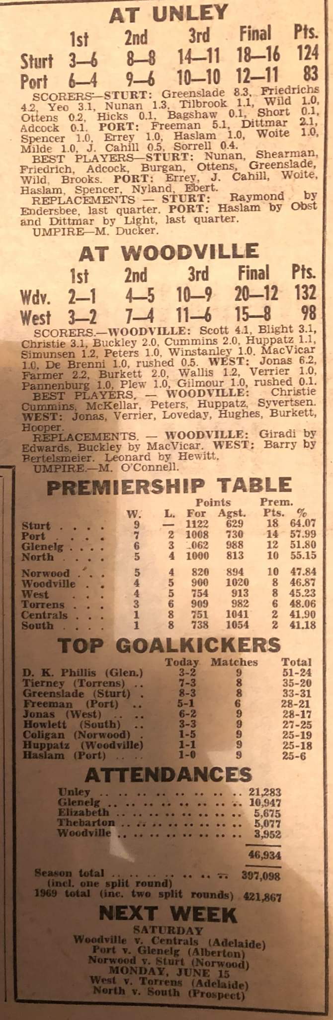 The game against West Adelaide at Football Park. It was a shootout, but a lot of very good football played and the Norwood game. The Port game, although Port came home with a rush was of a much lesser standard, North seemed to be in the time of the year where they were being trained heavily for the finals and didn't play anywhere near their best that day.