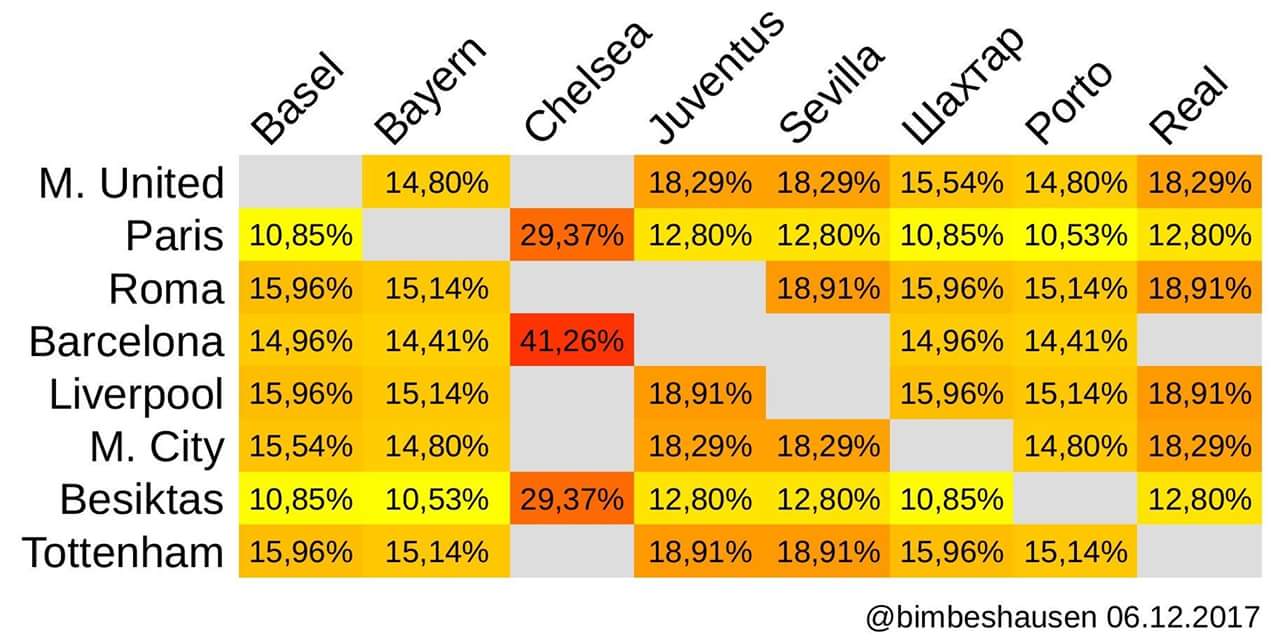Wedgie wrote:Spurs end up with the most points in the group stage of the CL despite being in the so called group of death. All 5 English teams through. Draw for knockout stage on Monday. Chance of opponents: