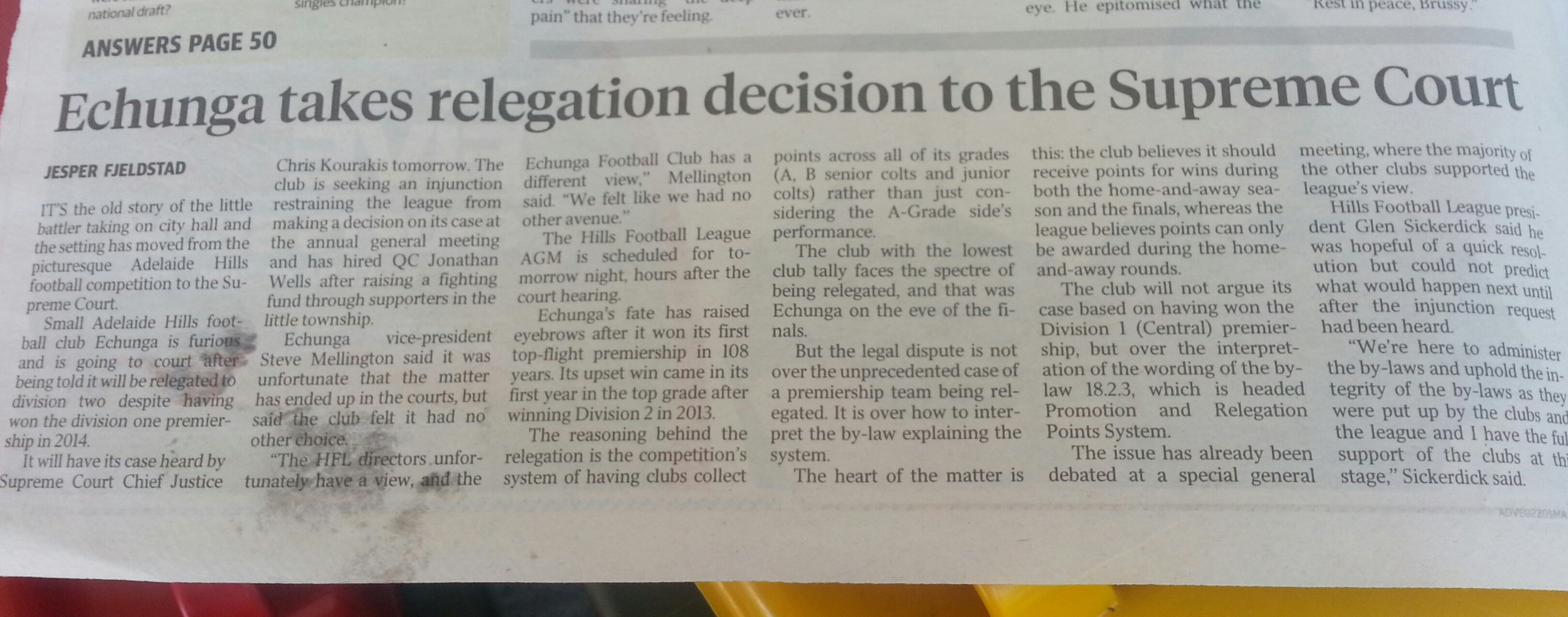 Interesting read in the Sunday Mail today. Echunga to take their case of (mis)interpretation of the bylaw to the supreme court tomorrow.